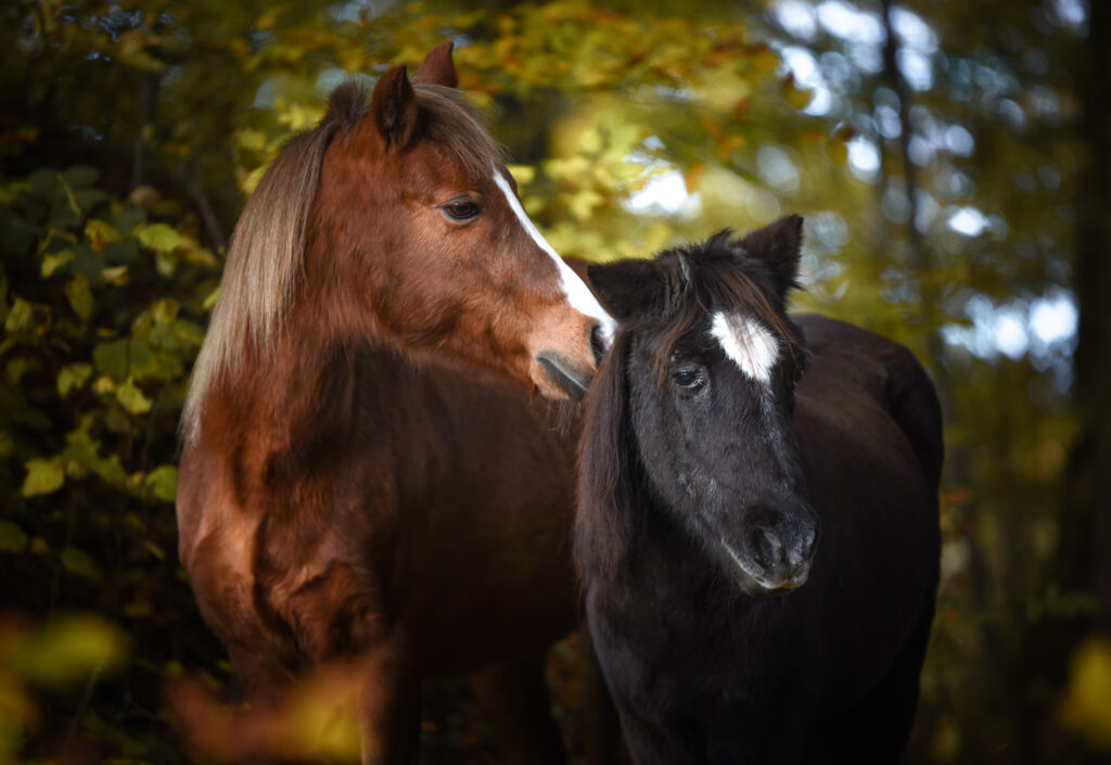 Shamun (links im Bild) ist ein Welshmix Araberpony und wird eingesetzt in der Bodenschule, für die Pferdegestützte Therapie und Seminare.